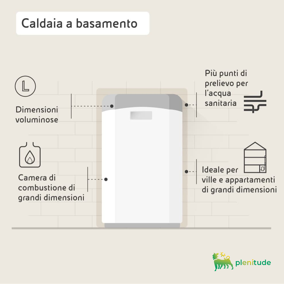 Le caldaie a basamento, al contrario, hanno un ingombro significativo (simile o addirittura superiore a quelle di un frigorifero) e, per questo, sono difficili da integrare all’interno di una casa e vengono installate per lo più in contesti industriali/commerciali. Tuttavia, se si abita in una villetta e se si ha bisogno di riscaldare quantità di acqua elevate le caldaie a basamento possono essere un’alternativa a quelle murali. Tuttavia, le moderne caldaie murali riescono a soddisfare le esigenze anche di famiglie numerose.