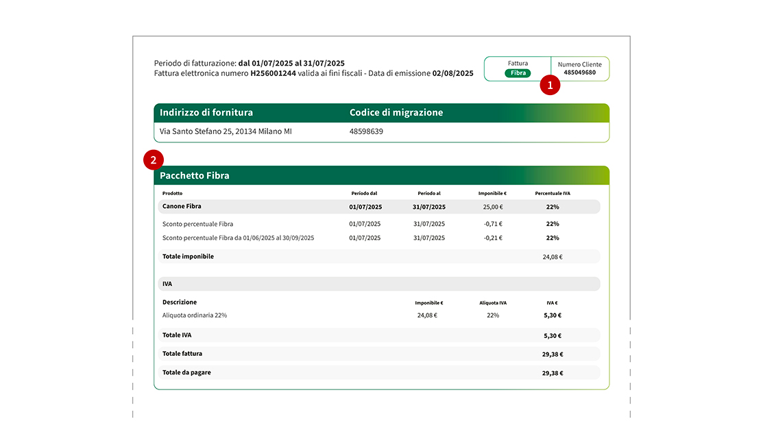 3. Subito sotto sono riportati il periodo di fatturazione, il numero della fattura e la data di emissione. Per il pagamento delle bollette, Plenitude mette a disposizione diversi metodi, dalla domiciliazione al pagamento online con carta di credito. Nel caso in cui siano presenti importi a credito, questi vengono indicati nella sezione dedicata ai consumi. Per motivi contabili, l’importo della fattura viene azzerato. Il credito può essere utilizzato per saldare le fatture successive, compensare eventuali fatture non pagate oppure, in caso di cessazione della fornitura o su richiesta del cliente, essere rimborsato. Viene inoltre indicato se i tuoi pagamenti risultano regolari e lo stato della tua offerta.